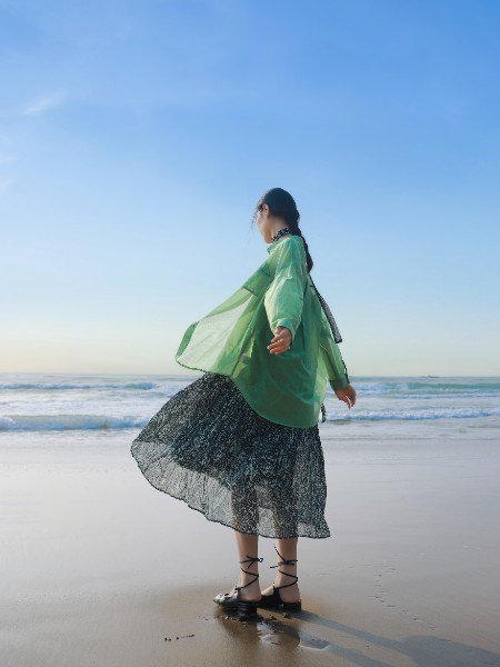 色彩是夏日的情绪载体。堓上摒弃高饱和度的刺眼色调,转而从自然中撷取低饱和的温柔:海浪蓝如清晨六点的海面,雾霭中透着清冷,搭配白色阔腿裤,瞬间为高温降下5℃的视觉凉意;柠檬黄是向日葵低头时的温柔,用于针织短袖或A字半裙,点亮通勤路上的沉闷,让笑容比阳光更耀眼;苔藓绿从深橄榄到浅薄荷层层晕染,仿佛将森林的层次感穿在身上,搭配草编包与木质凉鞋,营造日系清新感;而云朵白保留棉麻的天然肌理,未经过度漂白的本白色,像清晨未化的积雪,干净中带着温暖的粗粝。这些色彩不喧哗,却能在人群中一眼被记住——因为独特,从来不需要刻意张扬。